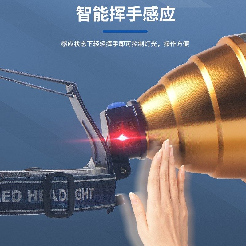 头戴式强光e头灯充电感应激光黄蓝光超亮手电筒夜钓鱼专用户外照