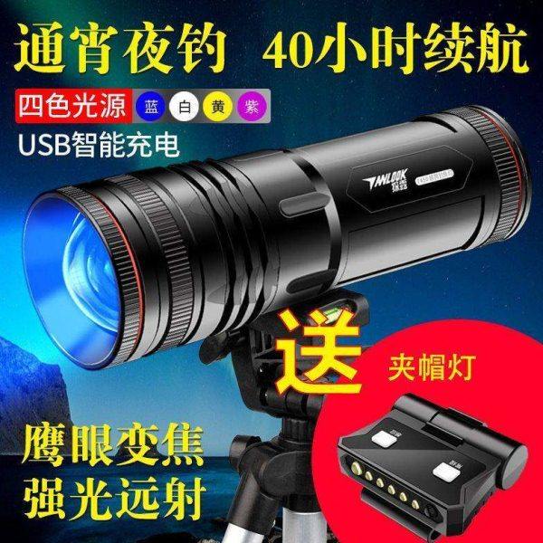 黄光夜钓灯USB充电强光大功率LED蓝光手电筒户外垂钓紫光钓鱼灯