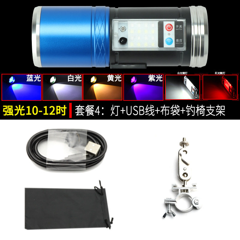 夜钓灯激光钓鱼蓝光灯专用四光源超亮氙气灯强光紫光灯充电手电筒