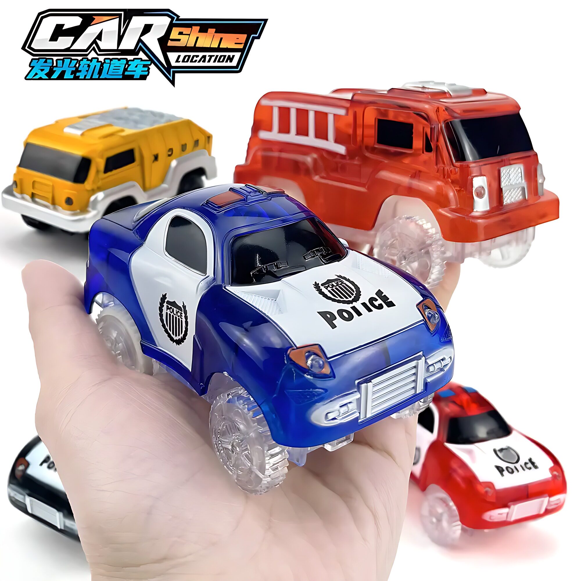 磁力片轨道车电动发光吉普警车工程小火车轨道配件儿童玩具小汽车