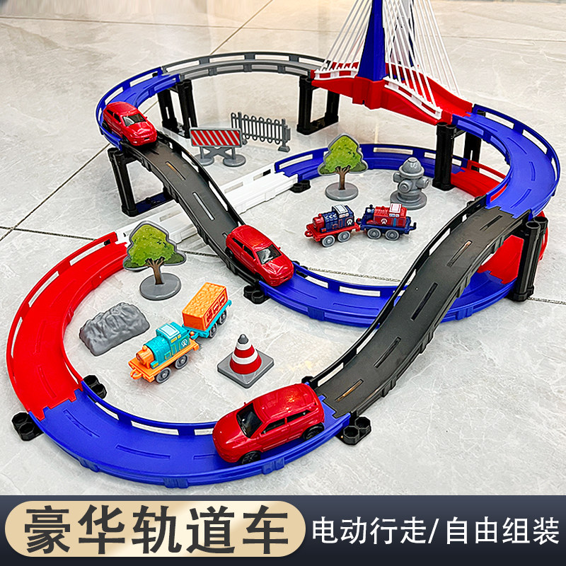 儿童电动小火车汽车过山轨道滑行益智DIY拼图轨道车玩具男孩3-6岁