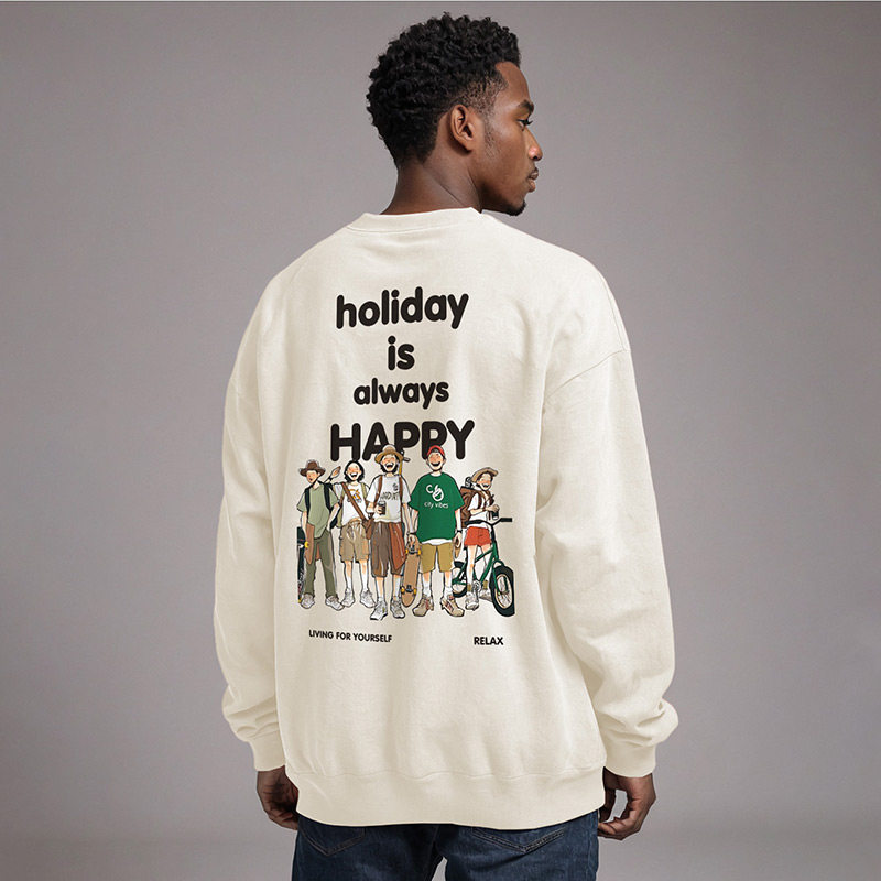 兔先森春秋季日系复古重磅圆领卫衣男士潮牌宽松后背印花套头上衣
