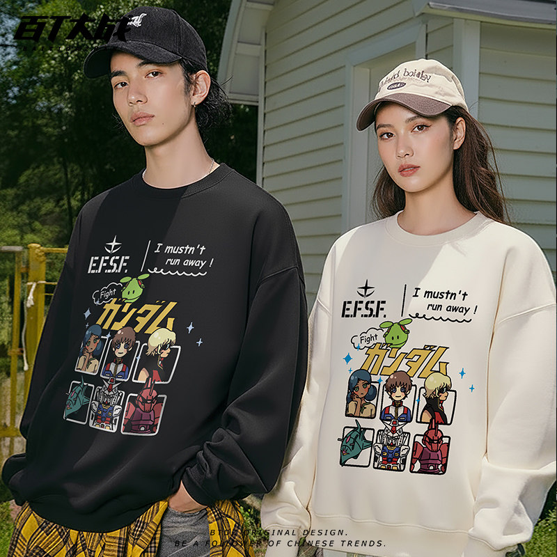日系潮牌圆领卫衣男女款高达动漫联名宽松纯棉重磅青少年爆款衣服