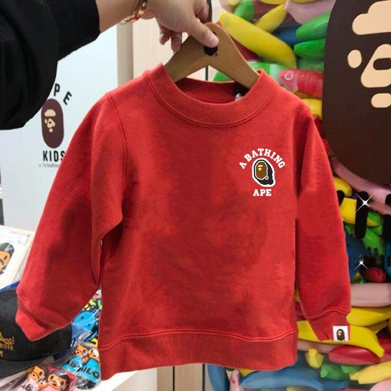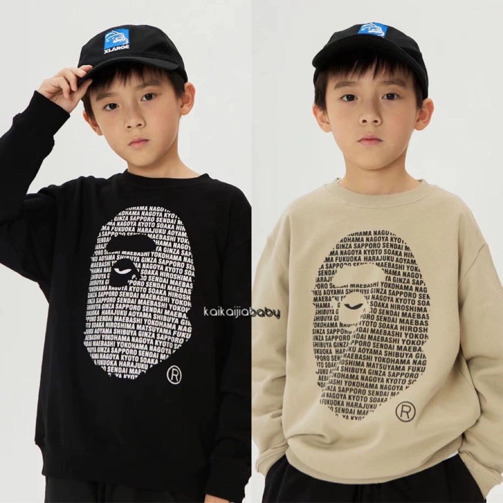 日系潮牌卡通猴子男女儿童圆领卫衣2025秋装猿人字母宝宝打底上衣