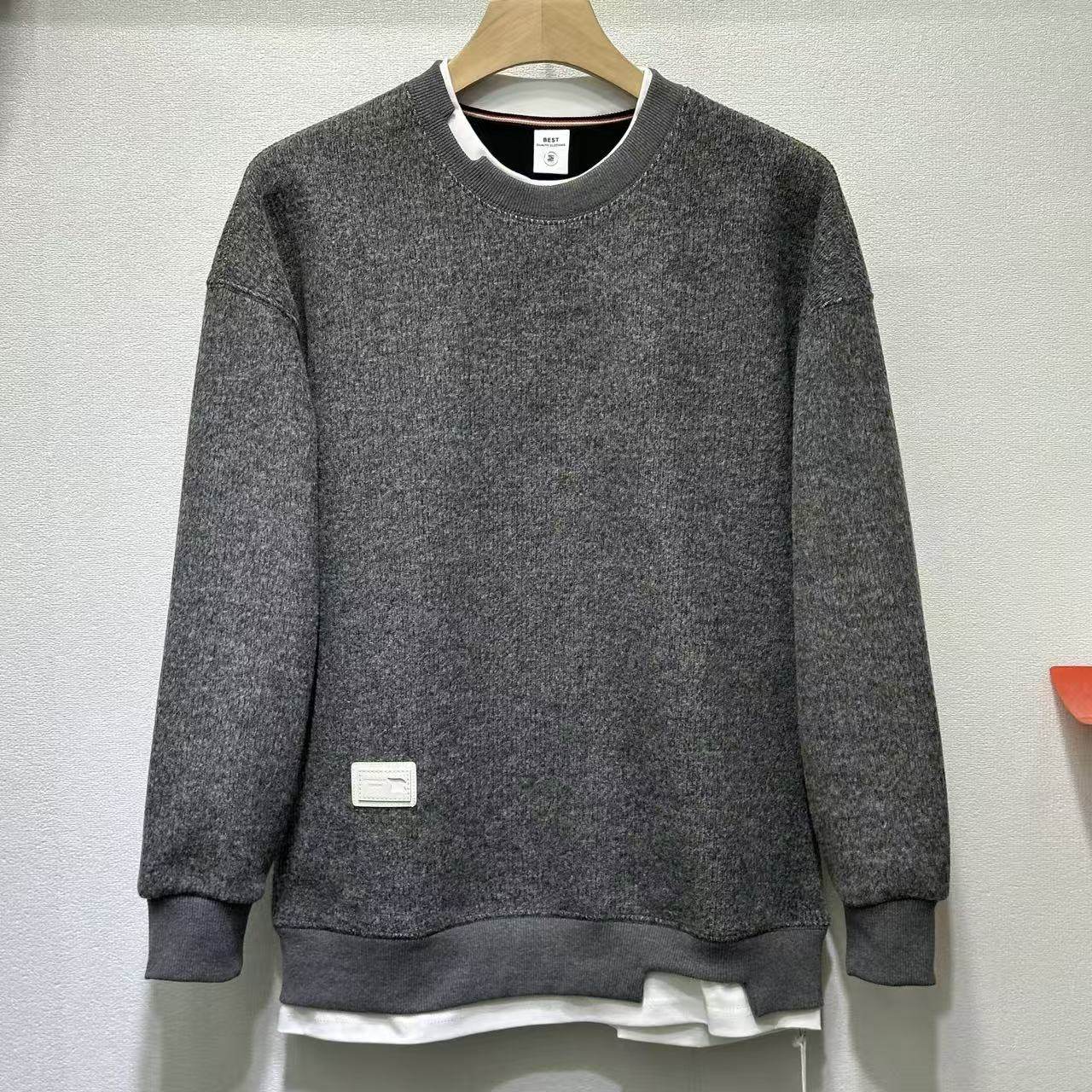假两件长袖卫衣男秋冬新款宽松潮牌圆领上衣日系重磅纯色男士外套