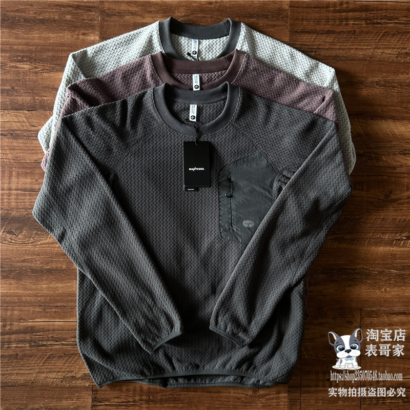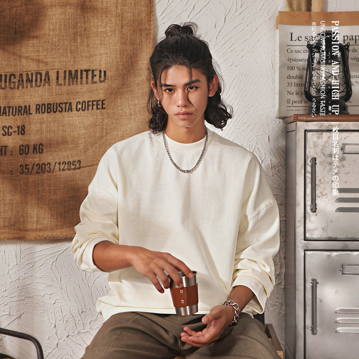 714street华夫格圆领卫衣男秋新款上衣潮牌情侣装日系复古套头衫