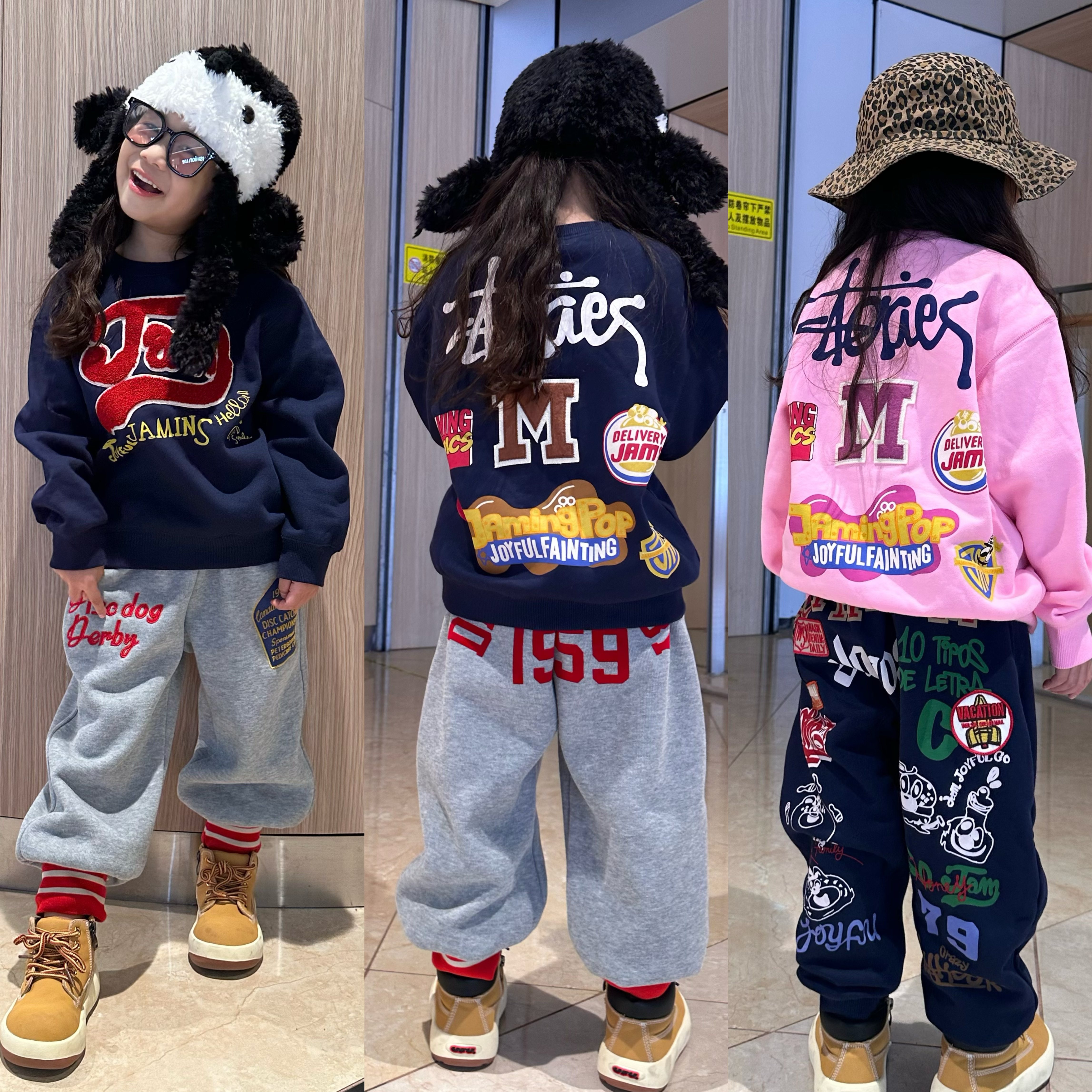 闲闲家秋冬jam童装日系儿童重工刺绣圆领加绒卫衣男女童卡通上衣