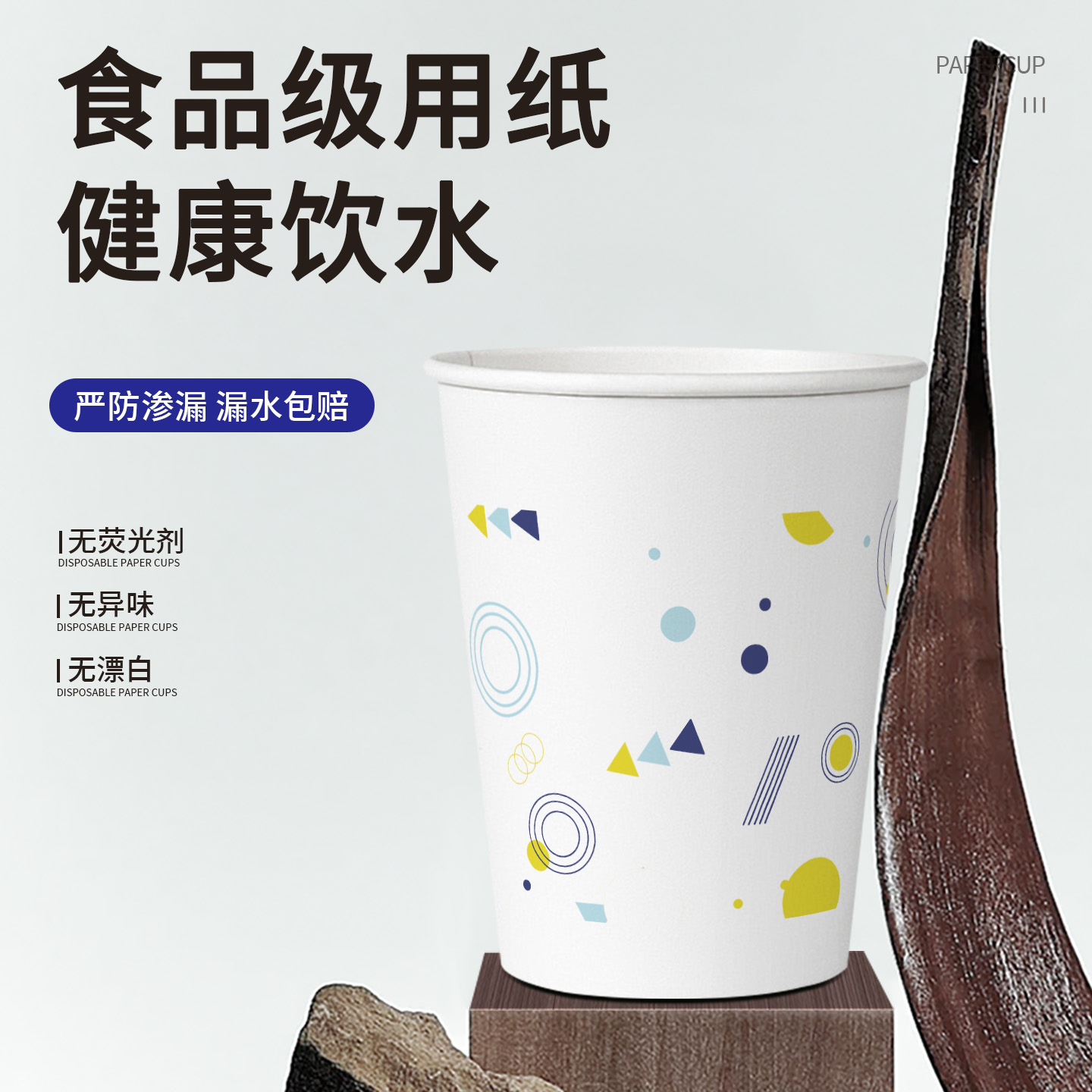 水天缘一次性纸杯家用杯子加厚装豆浆杯可乐杯办公杯几何图案包邮