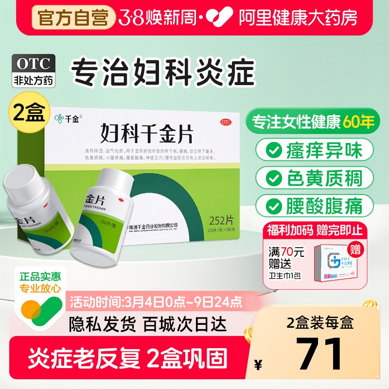 (妇科千金片126片盆腔炎阴道炎妇科炎症专用药有异味白带量多