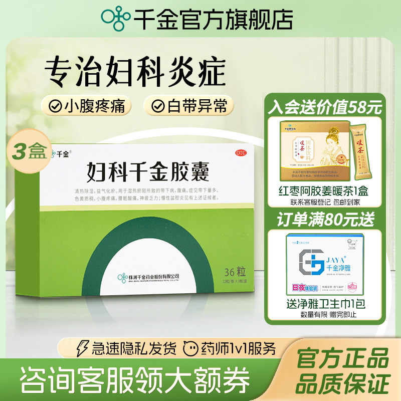 妇科千金胶囊36粒*3盒盆腔炎阴道炎白带异常妇科炎症专用药异味