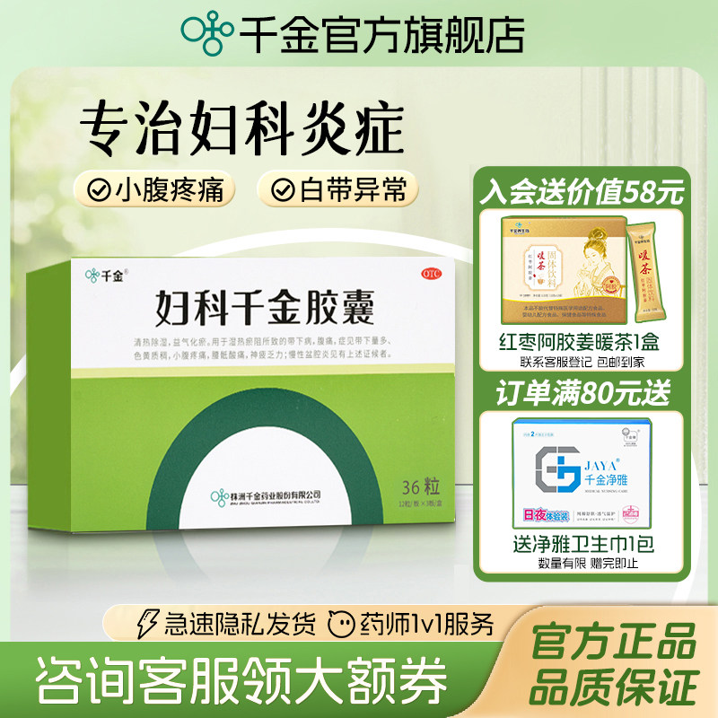 妇科千金胶囊36粒盆腔炎阴道炎异味白带异常妇科炎症专用官方正品