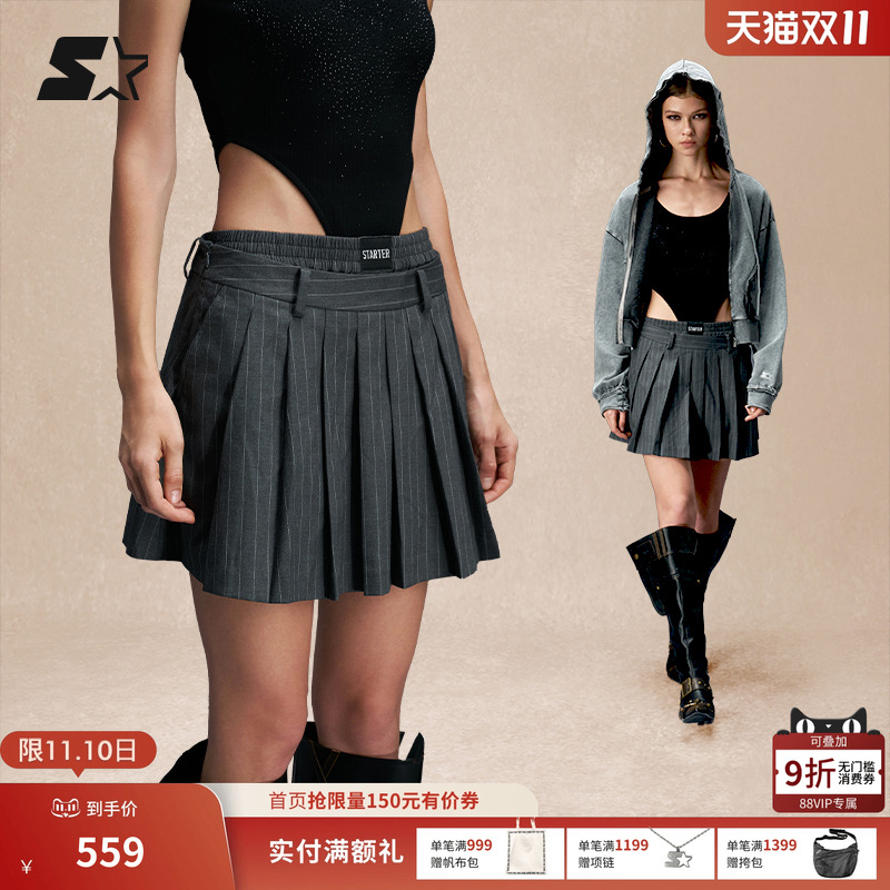 STARTER裙裤2025秋季新款女生百搭休闲短款西装百褶裙短裤套装