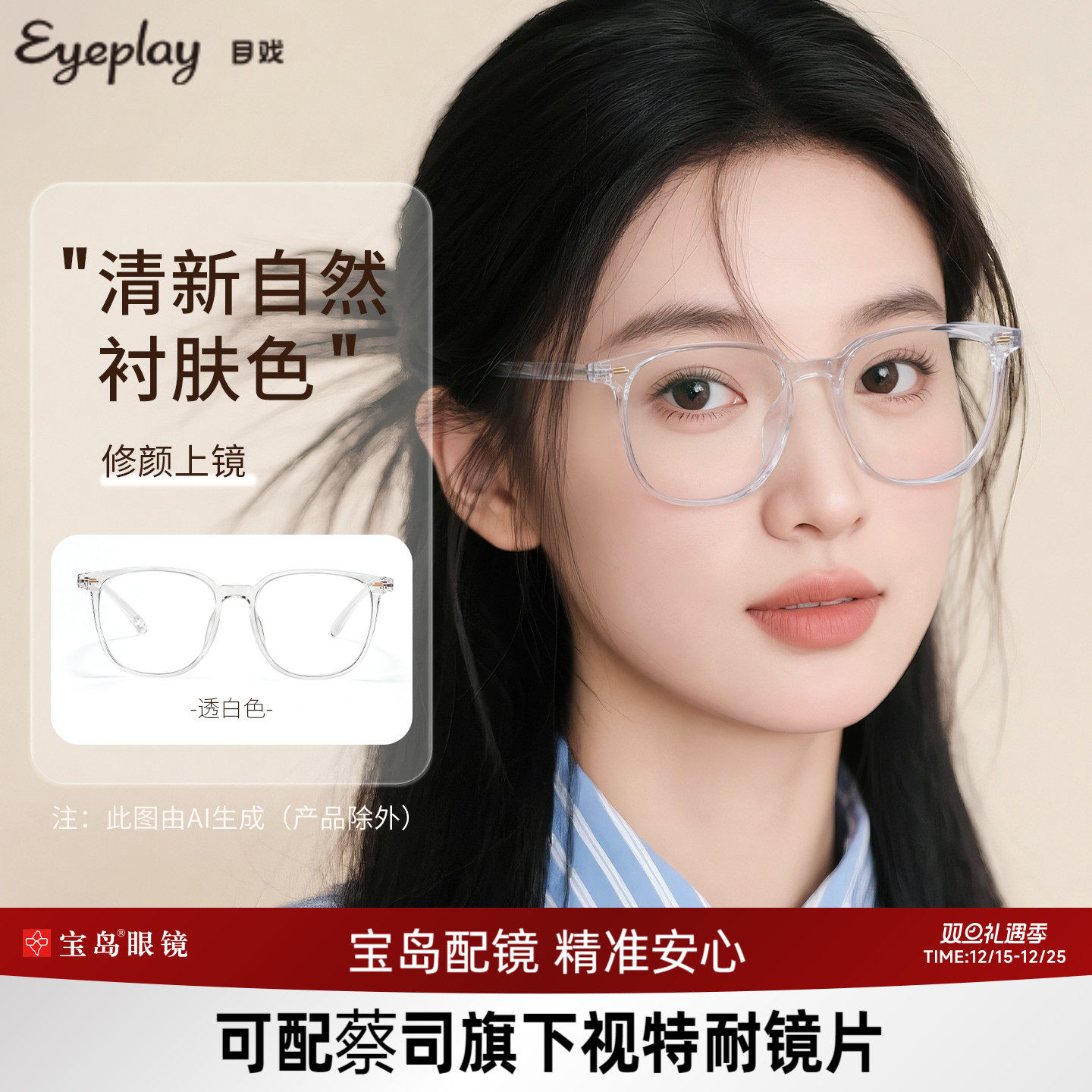 目戏素颜透明眼镜女眼镜框大框可配近视度数可选防蓝光镜片1068C2