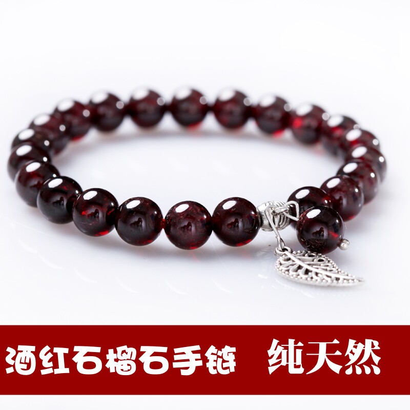 - 天然酒红石榴石手链女