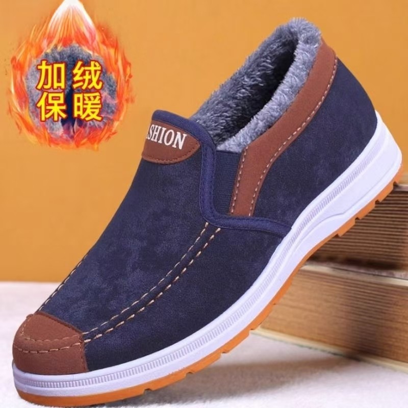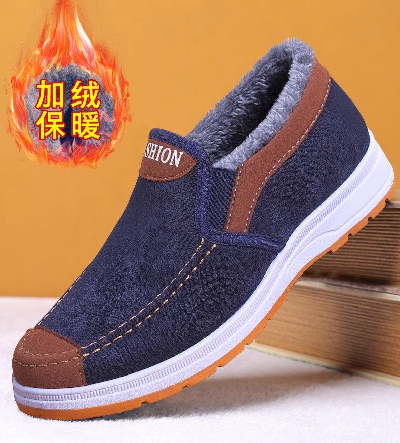老北京布鞋男冬季新款加绒加厚保暖中老年爸爸鞋防滑休闲帆布棉鞋