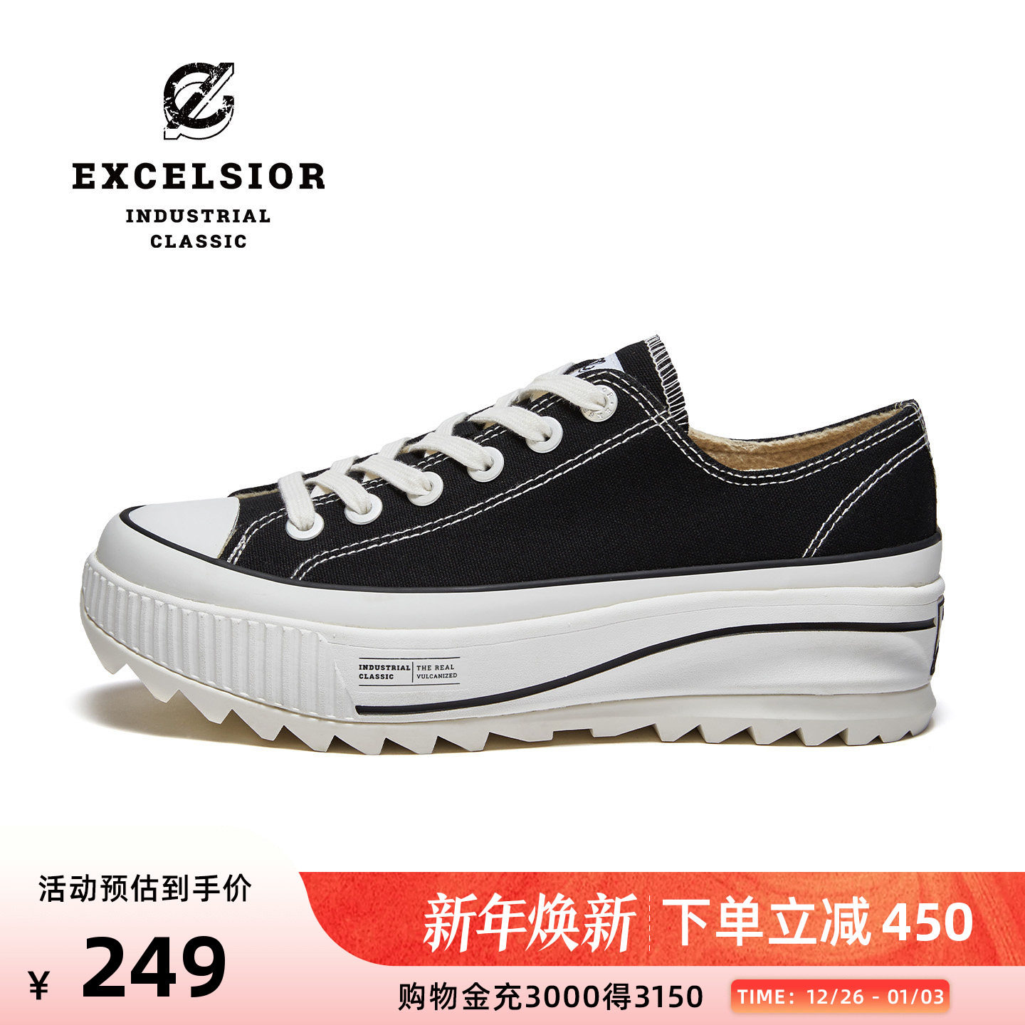 excelsior饼干鞋 冬季加绒女鞋运动休闲鞋男板鞋增高厚底帆布鞋