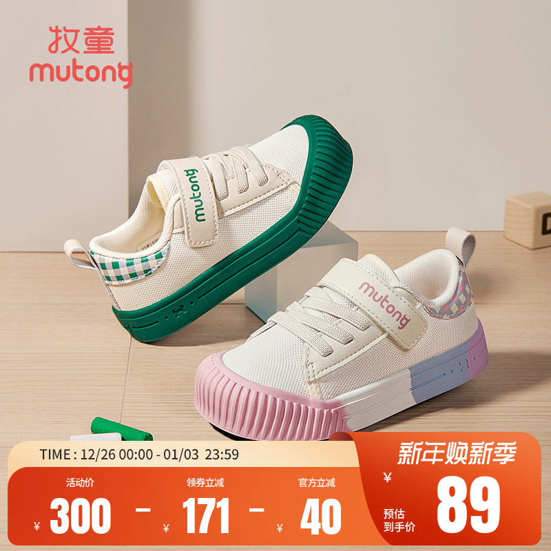 牧童儿童帆布鞋春秋男童鞋网面幼儿园室内鞋女宝宝鞋子休闲小白鞋