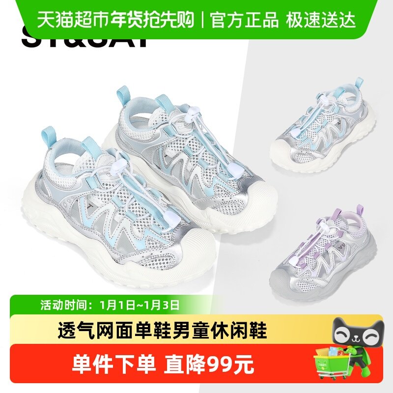 星期六童鞋儿童运动凉鞋2025夏季新款女童网面运动鞋男童透气单鞋