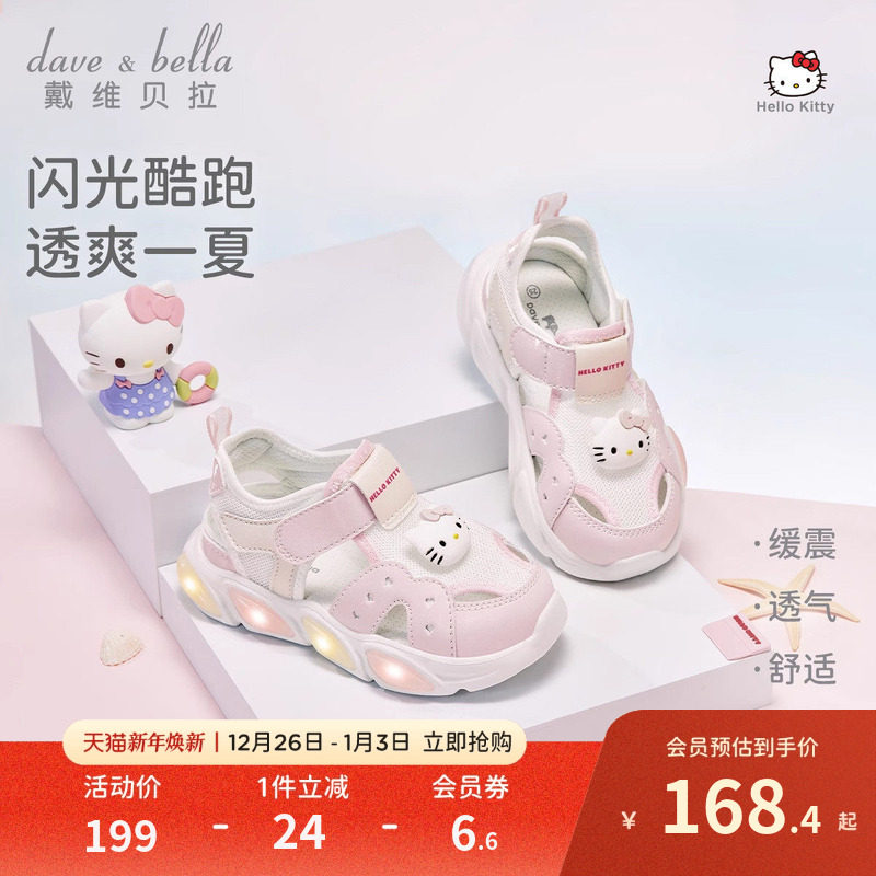 HelloKitty联名戴维贝拉女童凉鞋发光儿童运动凉鞋宝宝闪灯鞋亮灯