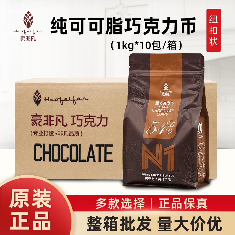 豪非凡纯可可脂巧克力币纽扣状1kg*10包西点甜品烘焙纯脂白巧黑巧