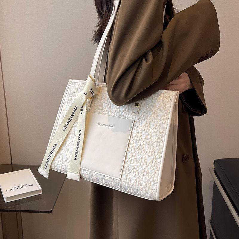 法式小众设计时尚刺绣手提包包女新款简约百搭字母单肩斜挎托特包