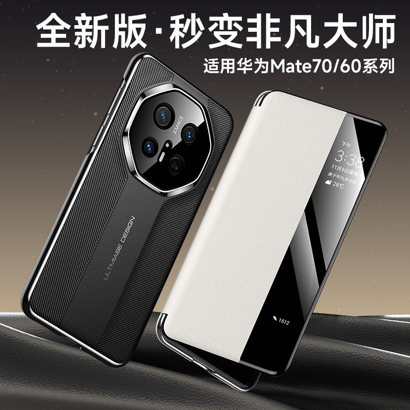 晨炘mate70pro磁吸翻盖真皮手机壳新款秒变非凡大师mate70RS全包防摔保护套pro+免翻盖接听智能视窗皮套