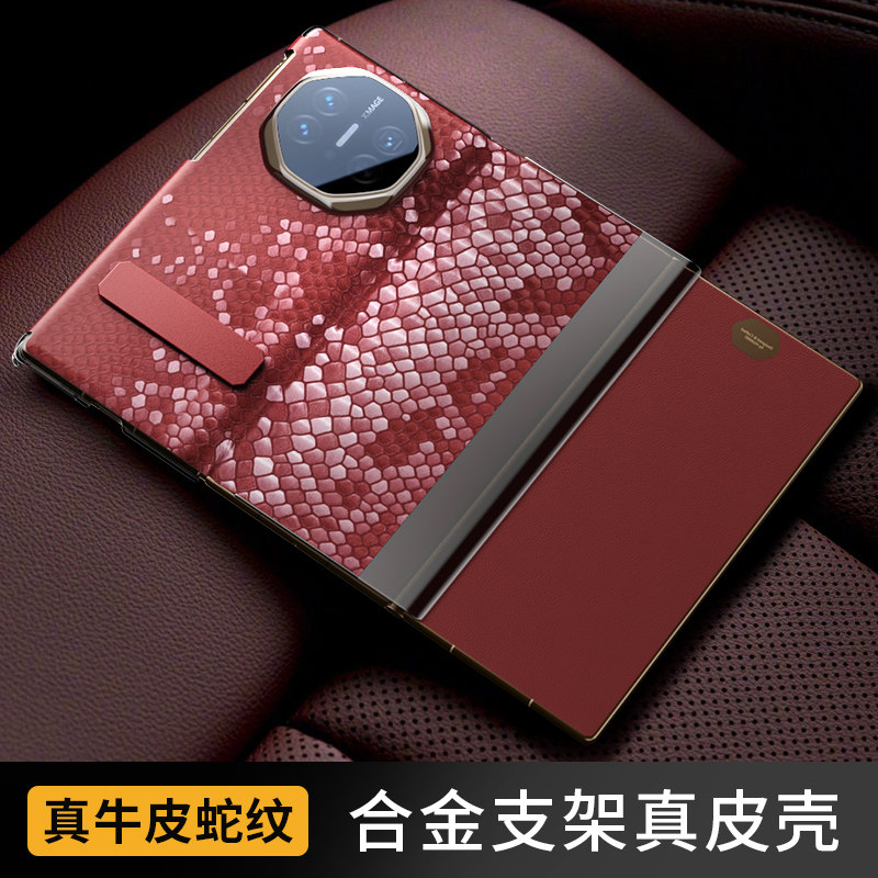 适用华为matext非凡大师手机壳头层牛皮蛇纹真皮智能视窗皮套双铰链全包中轴Mate XT三折叠翻盖式防摔磁吸套