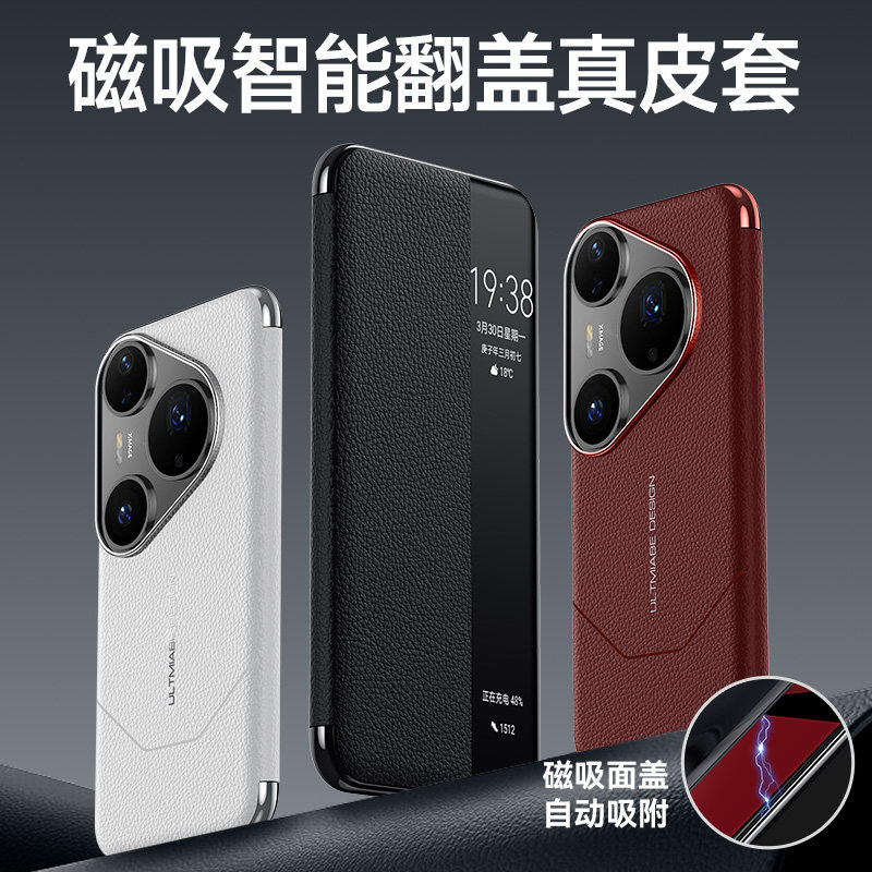 适用华为Pura80磁吸真皮非凡大师Pura80pro智能皮套真皮全包防摔Pura80ultra磁吸手机壳