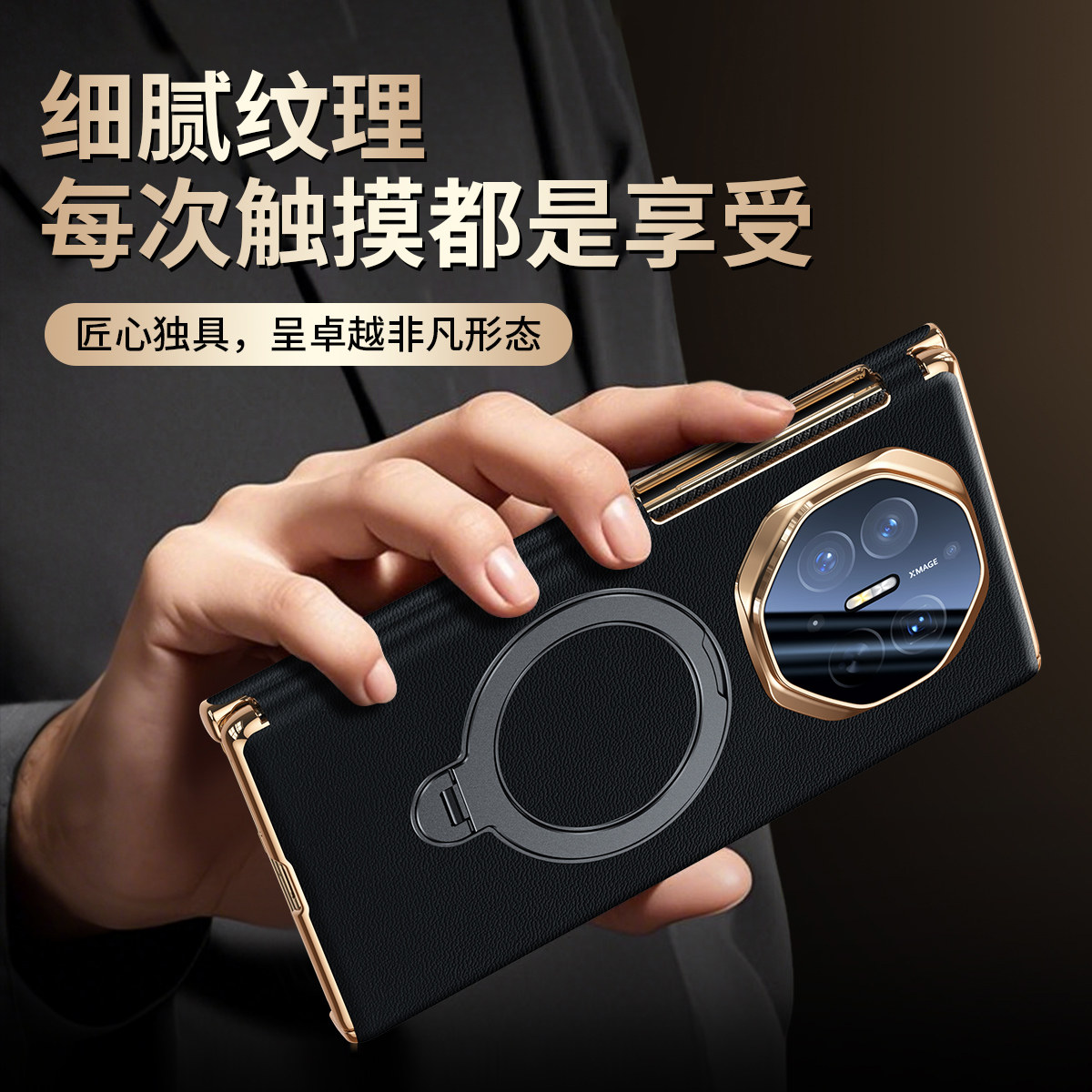 适用华为Mate80pro手机壳磁吸旋转支架max新款mate70pro+全包防摔RS非凡大师男素皮高级60保护套
