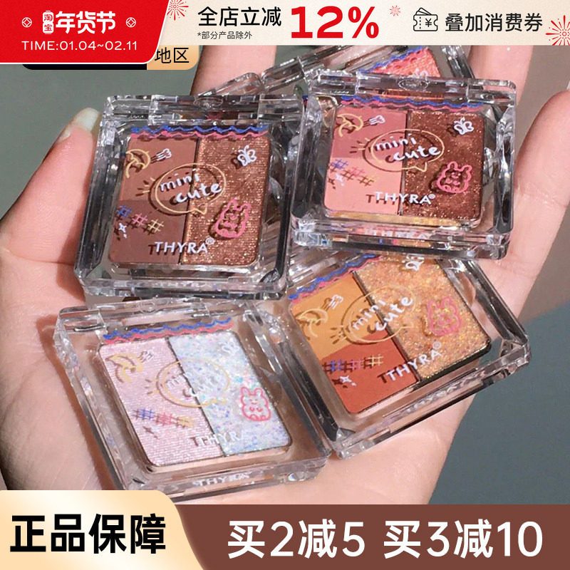 thyra昙雅三色小萌新眼影盘四色细闪日常哑光迷你大地色小盘便携