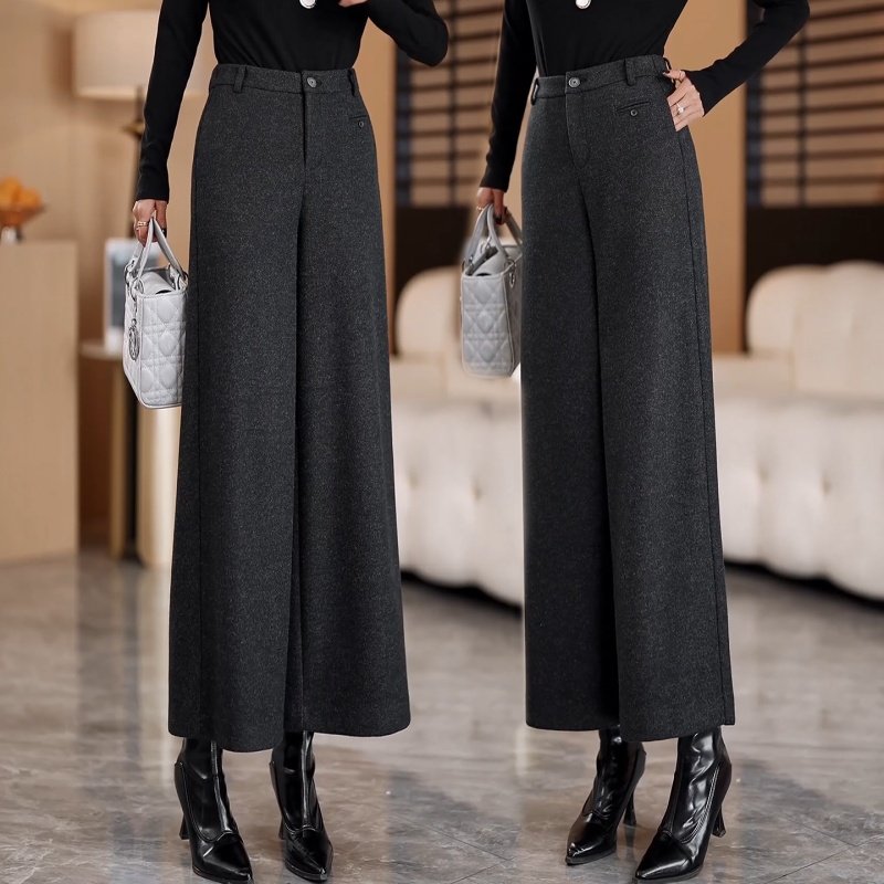 2025秋冬新款毛呢阔腿裤女高腰长裤子加厚九分直筒甩裤大脚宽裙裤