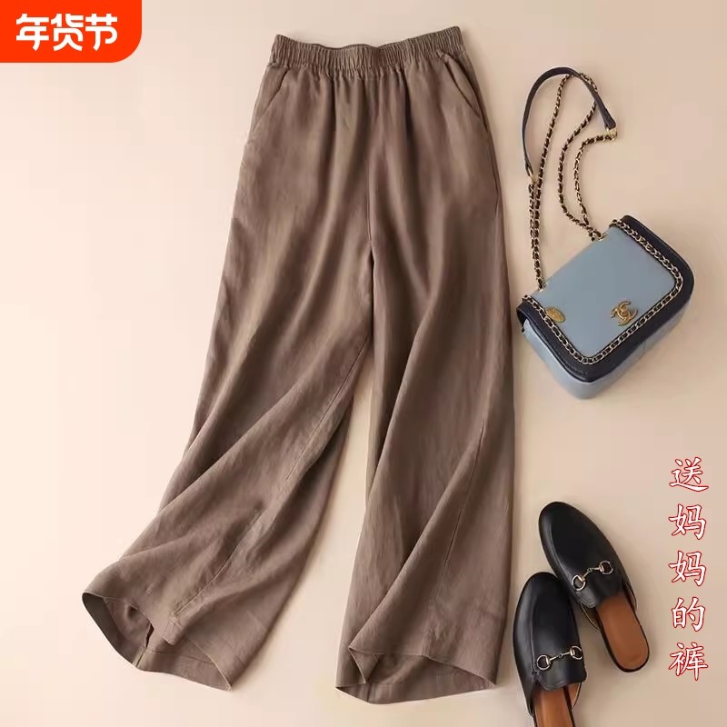 亚棉阔腿裤中老年女装夏季新款九分垂感大脚休闲裤女棉麻宽松裤子