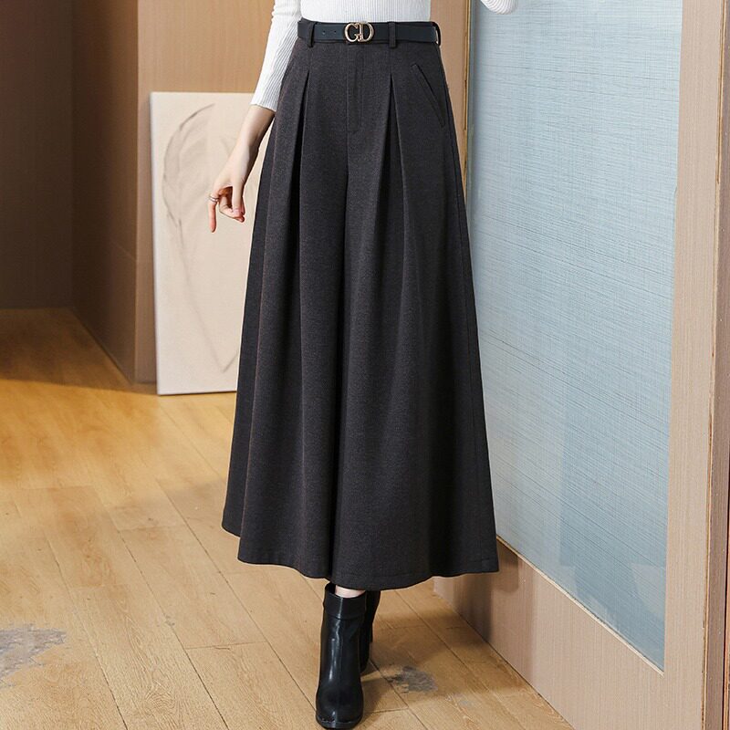 2024新款毛呢阔腿裤女秋冬九分妈妈裙裤垂感冬季加厚外穿大脚裤子