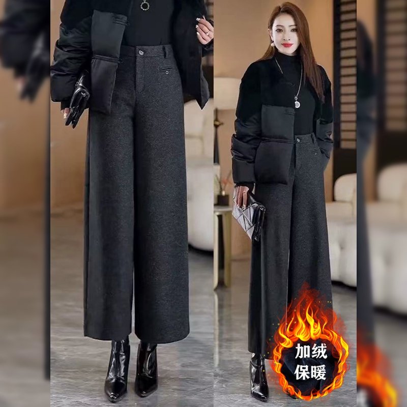 秋冬新九分阔腿裤大脚直筒裤子宽松高腰裙裤羊毛呢子毛呢女厚加绒