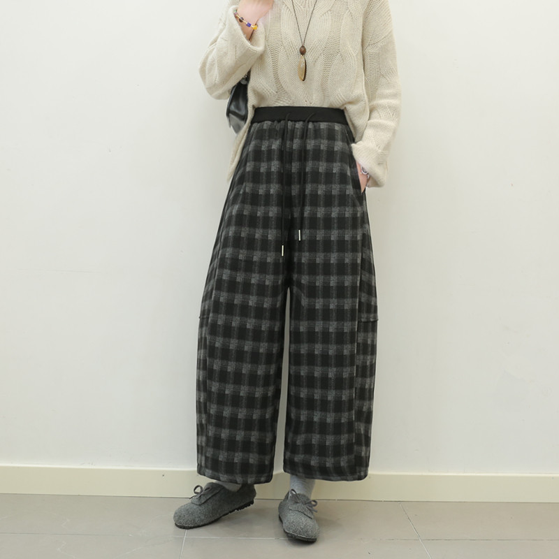 复古格纹裙裤阔腿裤女秋冬2025新款高腰宽松遮肉九分大脚裤休闲裤