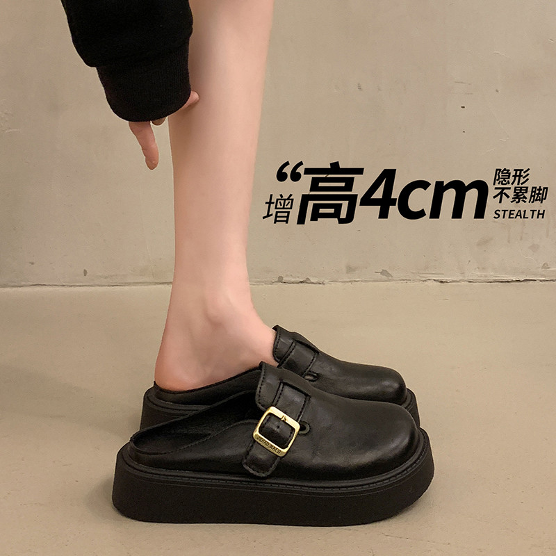 厚底勃肯鞋女春季原宿复古平底包头半拖鞋外穿一脚蹬懒人增高女鞋