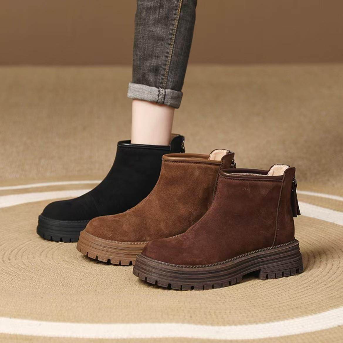 厚底短靴2025冬季新款时尚复古加绒加厚保暖百搭软底软面女士靴子