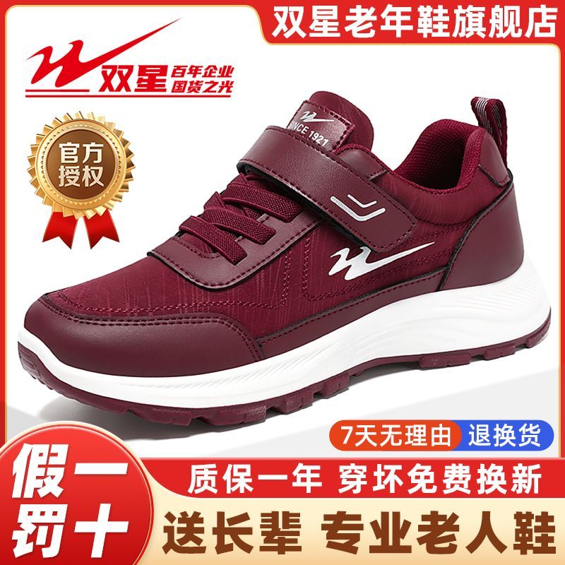 双星八特老人鞋女秋冬正品防滑防水皮面妈妈爸爸健步鞋名牌运动鞋