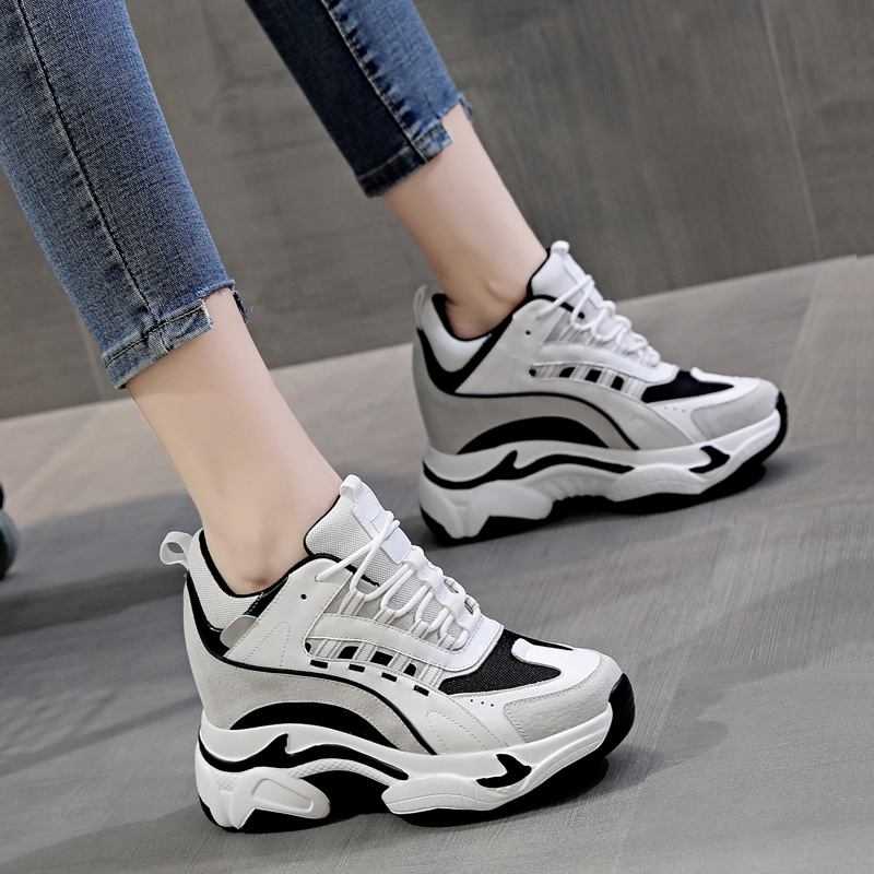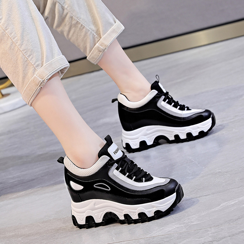 真皮高跟老爹鞋女ins潮内增高10cm松糕鞋厚底秋冬百搭休闲运动鞋