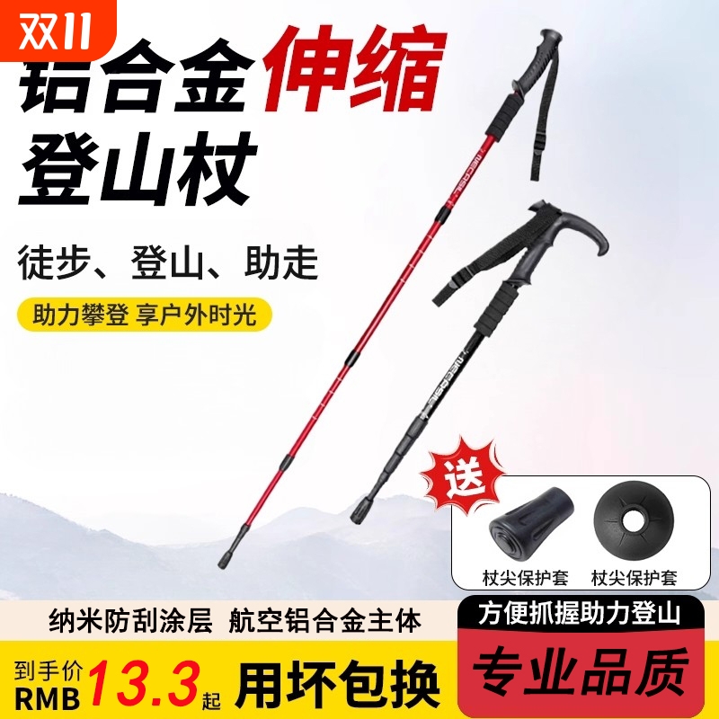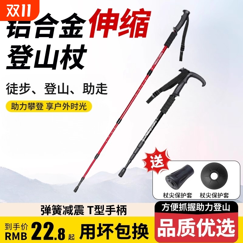 虚胖7075铝合金户外伸缩登山杖碳素拐杖折叠手杖专业徒步装备用品