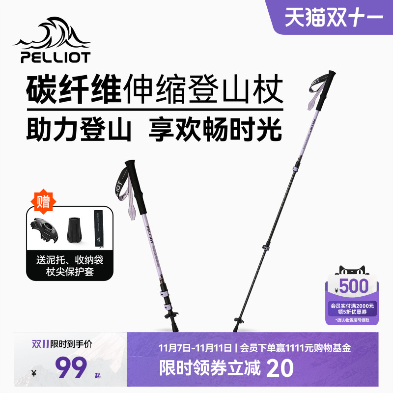 伯希和户外徒步登山杖碳素伸缩手杖女款专业爬山装备碳纤维拐棍男