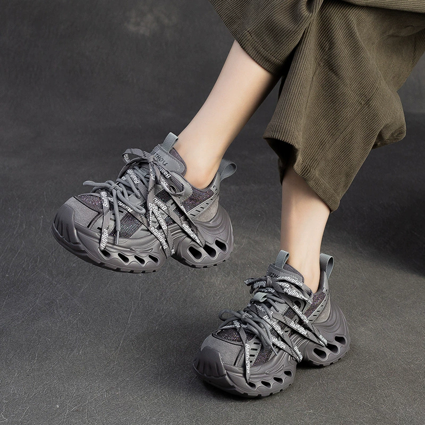 2025春夏韩版超高跟12CM内增高女鞋厚底松糕跟系带休闲运动鞋单鞋
