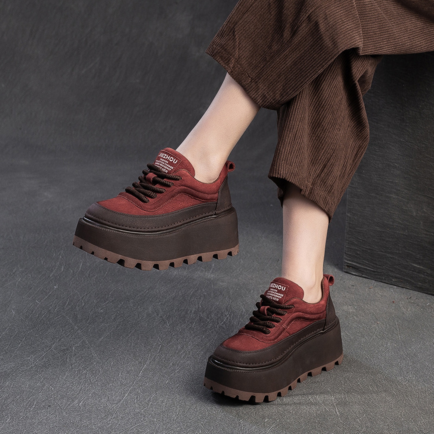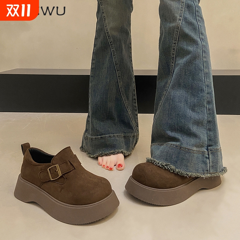 四月倾城厚底真皮休闲单鞋2025新款小个子增高松糕跟复古女鞋棉鞋