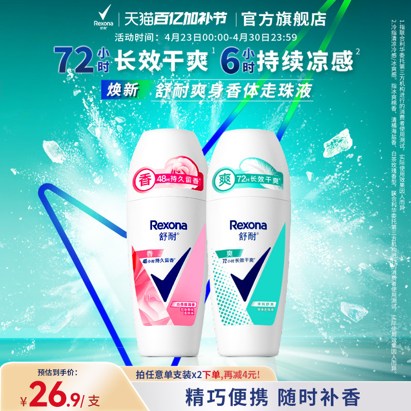 rexona舒耐止汗走珠止汗露女腋下除臭去异味香体止汗液膏滚珠男士
