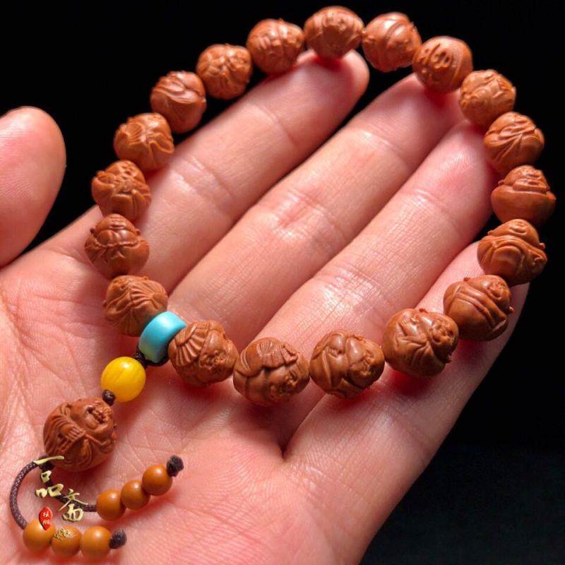 极速龙纹桃核雕刻一念恶僧核雕手串怒佛弥勒佛桃木U手链非小核桃