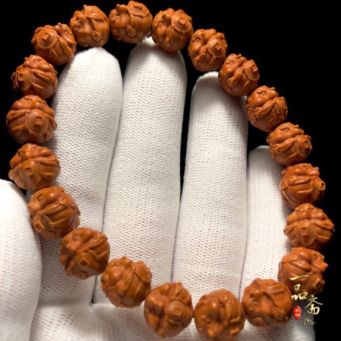 极速龙纹桃核雕刻财神手链弥勒佛财弥文玩L核雕手串桃木桃胡手雕