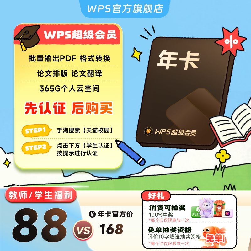 【学生专属】WPS超级会员2年 手机号充值 官方正版 先认证再下单
