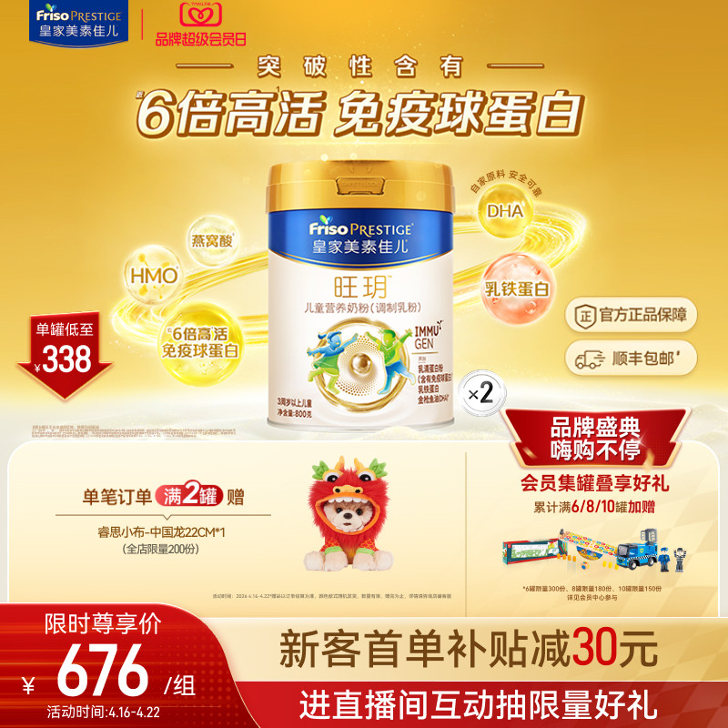 超级会员日】皇家美素佳儿旺玥儿童奶粉800g*2(3-14岁)乳铁蛋白