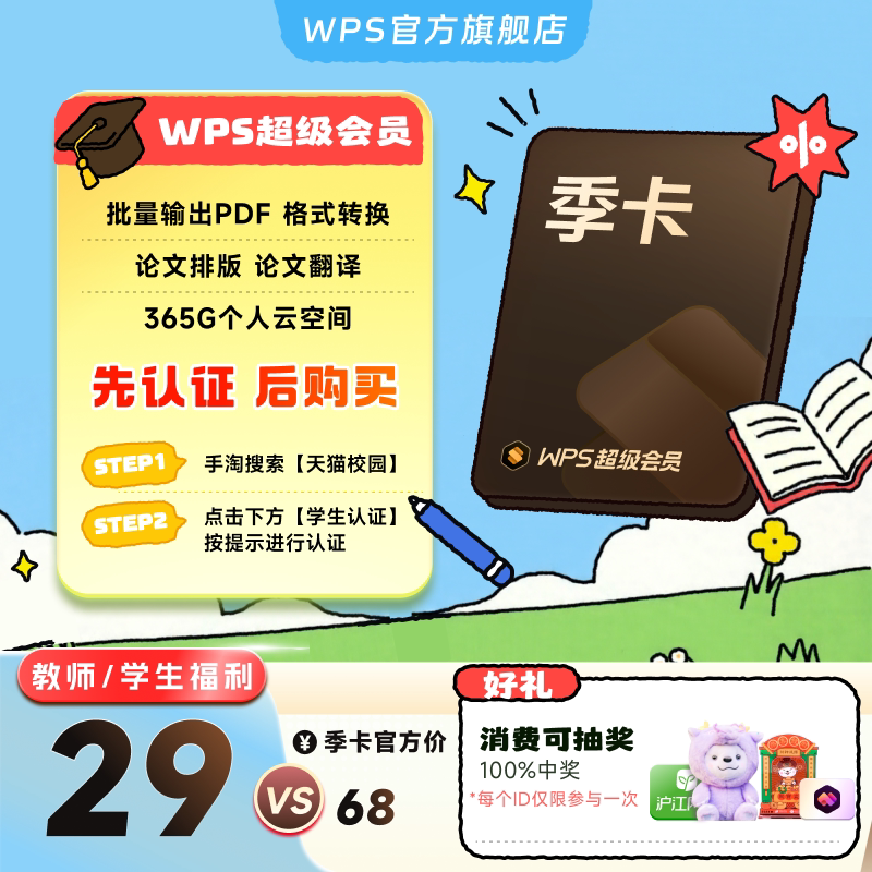 【学生专属】WPS超级会员1年 office 论文word排版 课件整理 模板