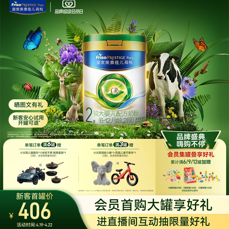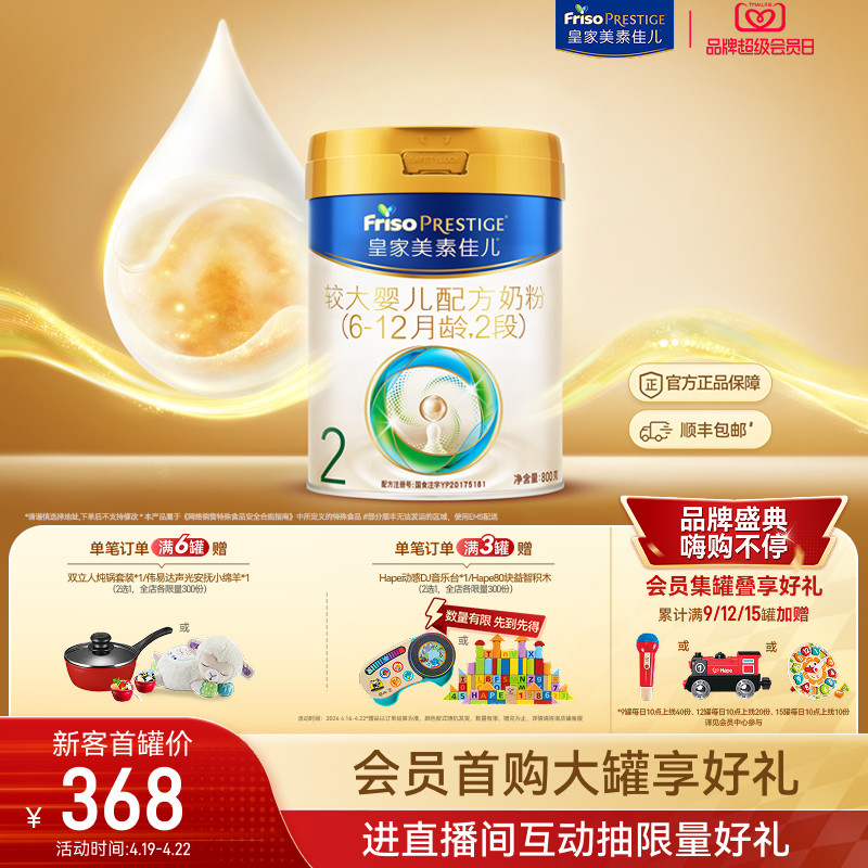 【超级会员日】皇家美素佳儿莼悦较大婴儿配方奶粉2段800g*1罐